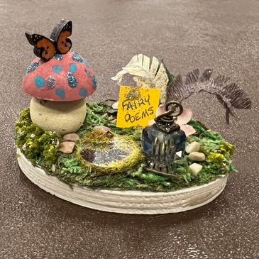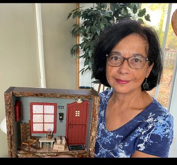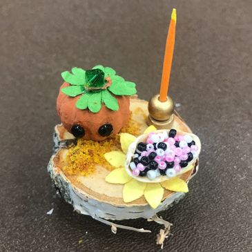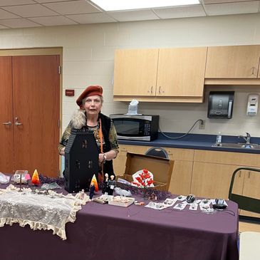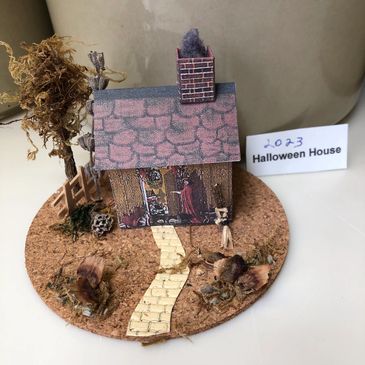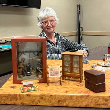 Due to unforeseen circumstances, Cindy was not able to teach the October project. Cindy shared antique miniatures and some modern Halloween miniature items from her collection. Kathie Anderle assisted Cindy by sharing her collection of antique & unique Halloween items.