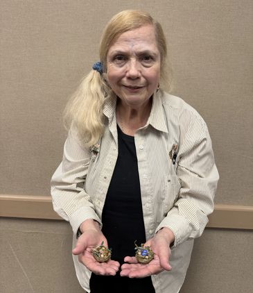 Pat Vorous is pictured with her original creation taught at the November meeting.