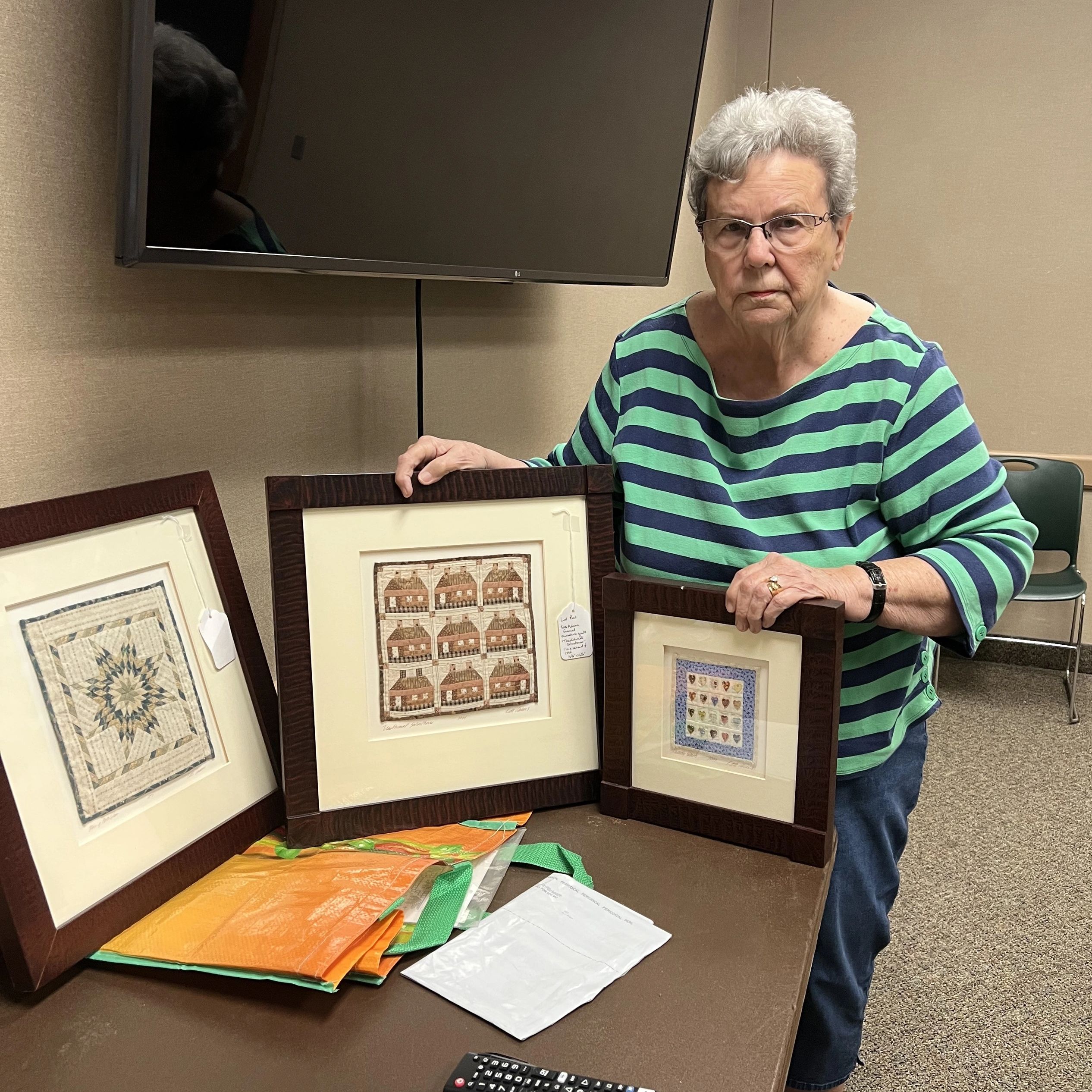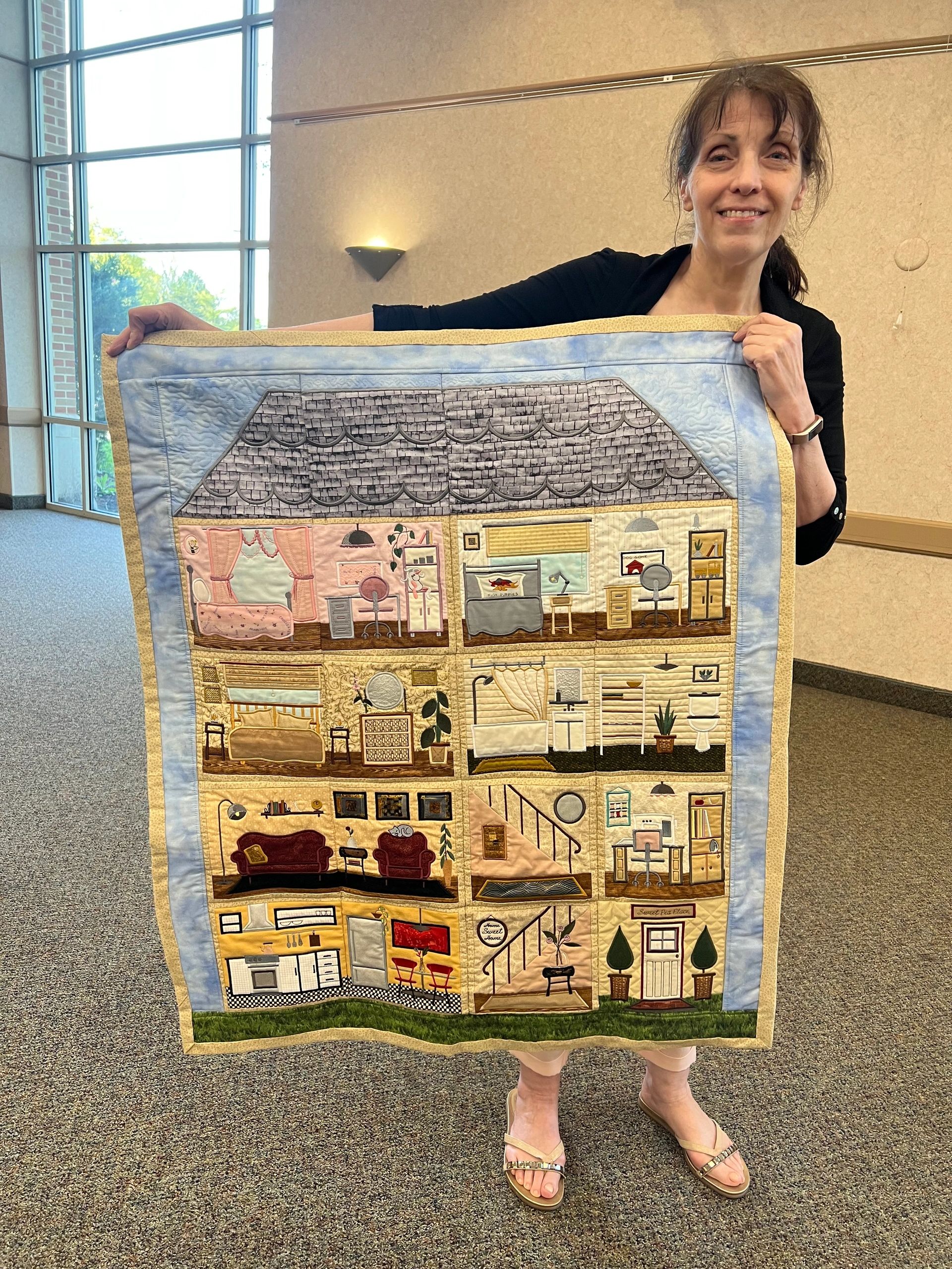 Karen brought 3 framed 1 inch scale miniature quilts from her collection that were made by a master miniature quilter - Kate Adams. These quilts were all made by hand. The work is incredibly detailed.